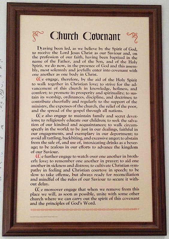 Many churches, especially those of Baptist lineage, hold to a “Church Covenant” much like this: