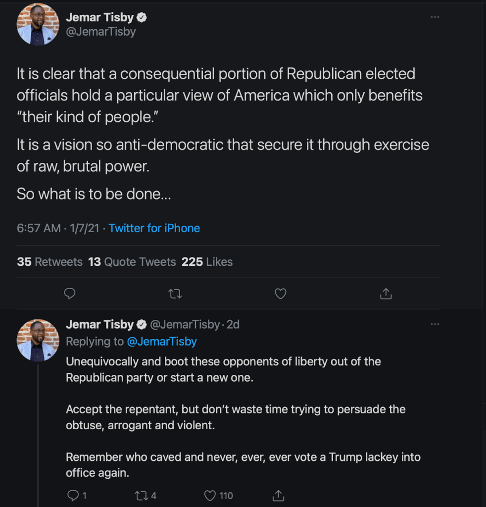 In the days that have followed, many posts on these same platforms have endorsed violence against anyone who supports Trump. And one particularly well-known SBC pastor actually tweeted the insinuation that (white) folks should have been shot in the Capitol. How is this any more acceptable than the other hate-filled vitreol from the Left that consistently goes untouched, while even questions of WHO was involved in the storming of the Capitol is grounds for having posts deleted and accounts suspended or banned?